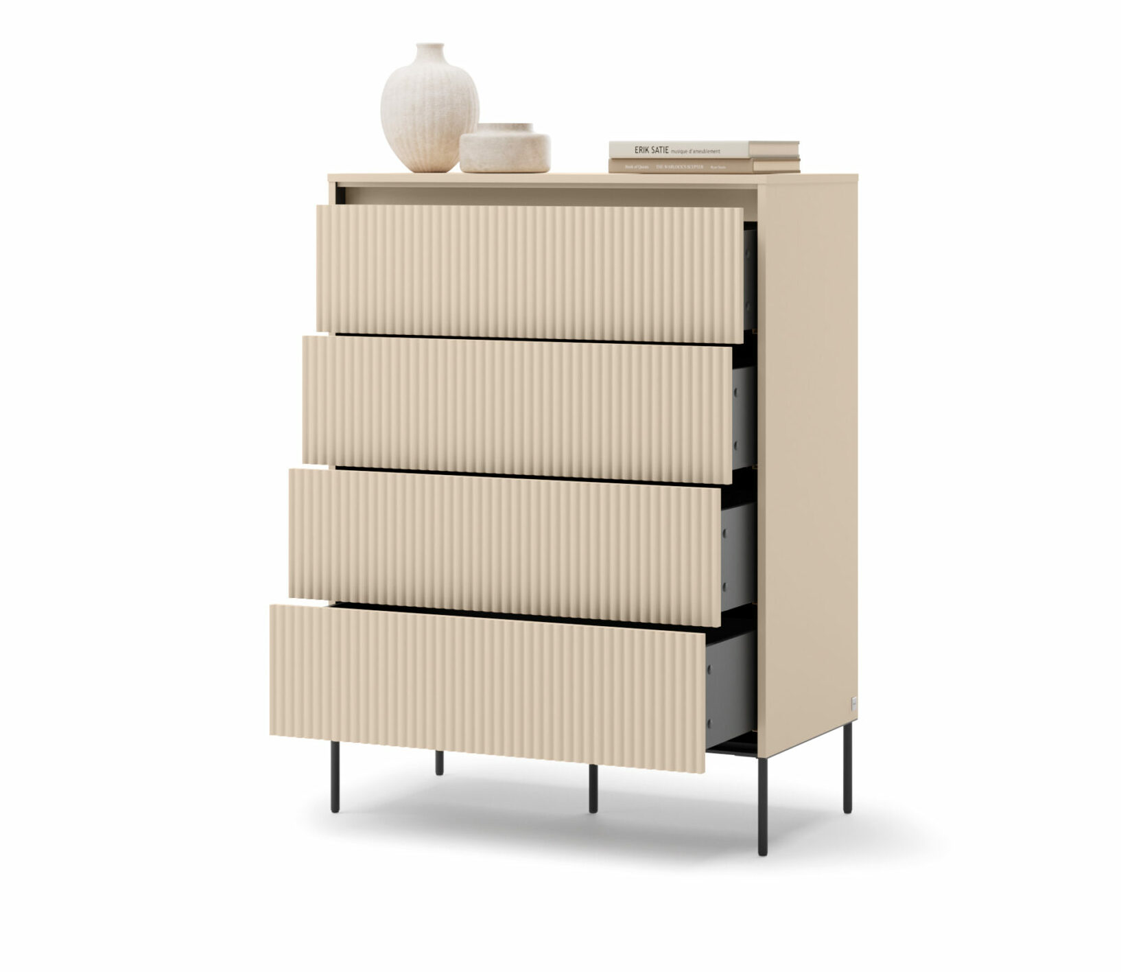 - Commode 4 tiroirs 93 cm Beige – STELLA : 4 tiroirs push-open pour un rangement optimisé