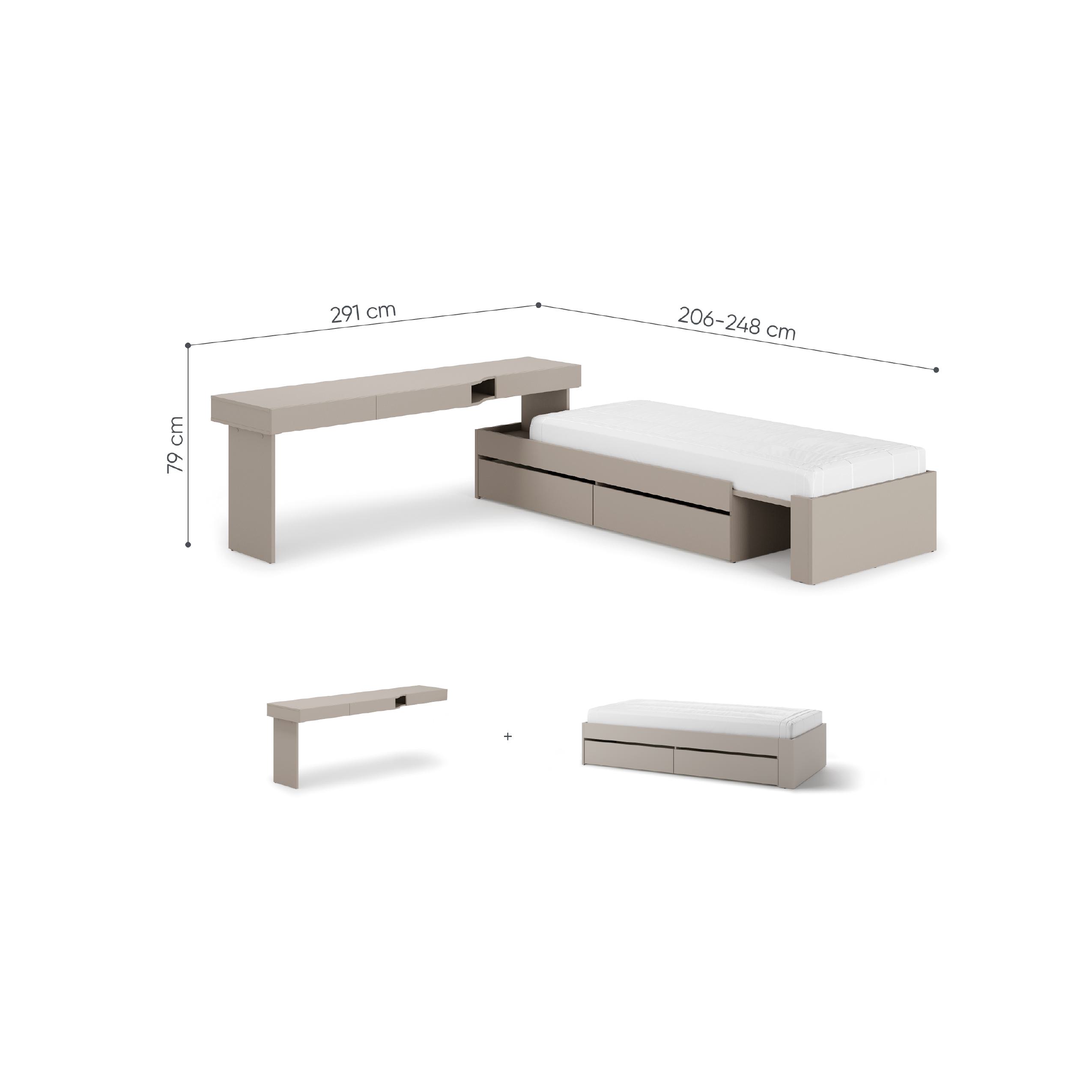 Ce lit pour adolescent avec bureau intégré de la collection MANON allie praticité et esthétique. Sa finition gris taupe et ses lignes droites créent un style moderne adapté aux chambres d’adolescents. Le design compact permet d’intégrer couchage, bureau et rangements dans une seule structure harmonieuse. Grâce à ses cinq tiroirs intégrés et son bureau spacieux, ce meuble optimise la chambre tout en conservant une allure élégante et épurée. Ce lit ado gain de place s’adapte aussi bien à un aménagement scandinave qu’à une décoration urbaine, et devient la pièce centrale d’une chambre complète pour ado.